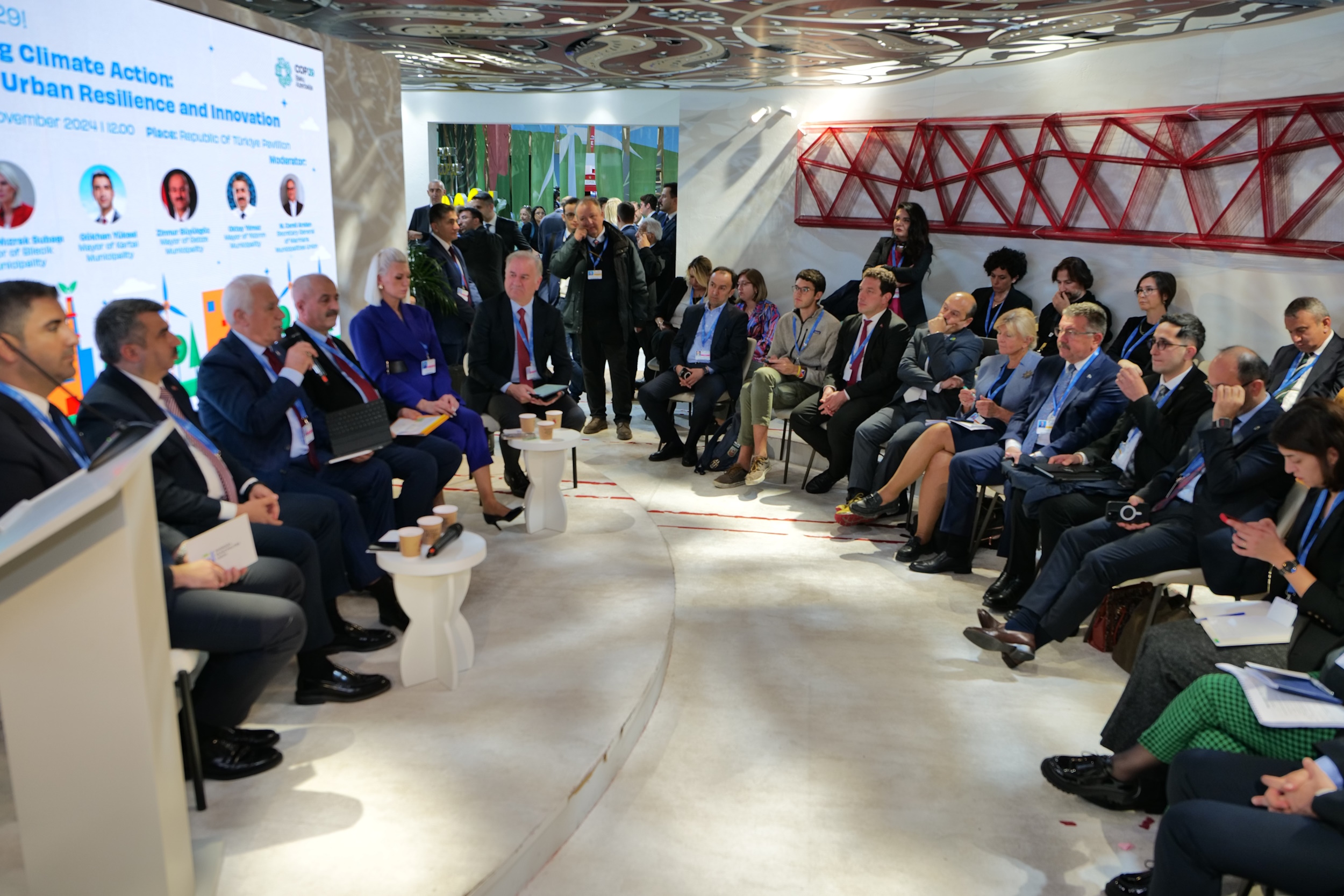 Birleşmiş Milletler (BM) İklim Değişikliği Konferansı (COP29), Azerbaycan’ın başkenti Bakü’de düzenleniyor. MBB ve Bursa Büyükşehir Belediye Başkanı Mustafa Bozbey, ‘İklim Değişikliğine Önderlik Eden Şehirler: Kentsel Dayanıklılık ve Yenilikçiliğin Güçlendirilmesi’ konulu oturumda konuşma yaptı. Oturuma, Bilecik Belediye Başkanı Melek Mızrak Subaşı, Yıldırım Belediye Başkanı Oktay Yılmaz, Kartal Belediye Başkanı Gökhan Yüksel, Gebze Belediye Başkanı Zinnur Büyükgöz ve Marmara Belediyeler Birliği Genel Sekreteri M. Cemil Arslan da konuşmacı olarak katıldı.