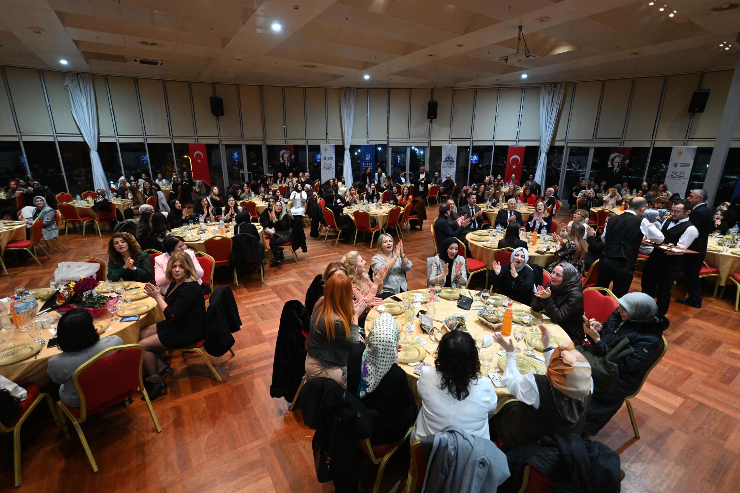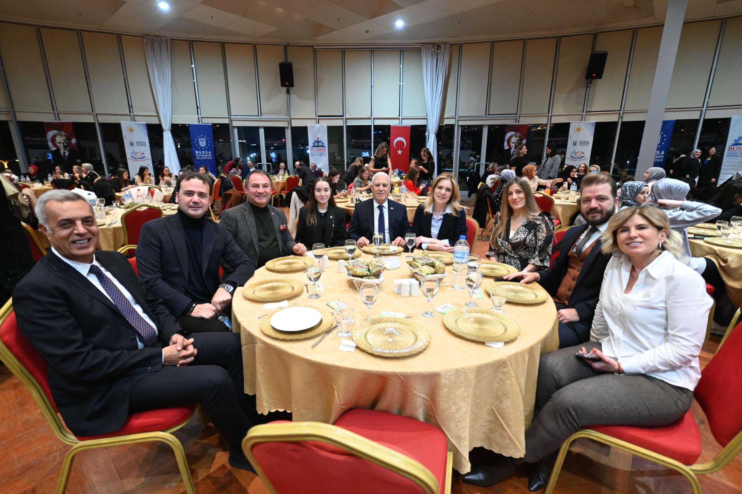 ‘Güçlü bir toplumun temeli eğitimdir’ felsefesiyle Bursa Yuvam’dan BUSMEK’e kadar eğitimin her alanında önemli katkılar sunan Büyükşehir Belediyesi bünyesindeki öğretmenler, 24 Kasım Öğretmenler Günü nedeniyle düzenlenen kutlama yemeğinde buluştu. Programa, Bursa Büyükşehir Belediye Başkanı Mustafa Bozbey ve eşi Seden Bozbey de katıldı.
