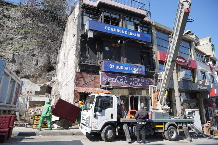 Bursa’da Çakırhamam Temiz Cadde üzerinde tarihi surların önünde inşa edilen 5 binanın yıkımı başladı.