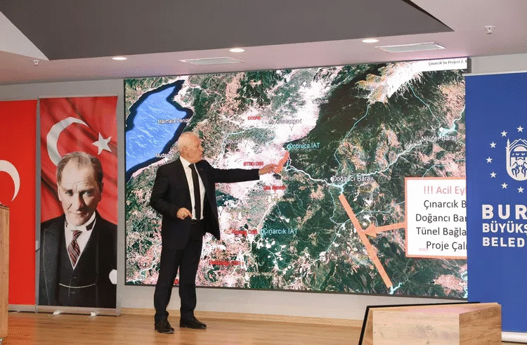 Bursa Büyükşehir Belediye Başkanı Mustafa Bozbey, su seviyesinin Doğancı’da yüzde 6,81, Çınarcık’ta yüzde 50 Nilüfer’de ise hiç kalmadığına dikkat çekerek, “Çınarcık bypass hattı şu anda kurtarıcı pozisyonunda. Her ihtimali göz önünde bulundurarak çözüm bulmak zorundayız. Çınarcık Barajı’ndaki suyun tamamını içme suyu olarak değerlendirmek istediğimizi DSİ”ye ilettik. Hiç yağmur yağmadığı ve planlı su kesintisi yapılmadığı takdirde bu koşullarda 6 Ekim tarihinde barajlardaki suyu tükenmiş olacak” dedi.