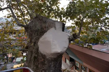Park ve Bahçeler Dairesi Başkanlığı ekipleri tarafından yapılan incelemede, anıt ağacın açık yarasında çürümüş ve mantarlaşmış bölümler tespit edildi. Hızlı bir şekilde bakım ve restorasyon işlemlerine başlayan ekipler, özel ilaçlarla ‘çürümeye yol açan’ bakterileri temizledi. Ağacın iskeletine teller aracılığıyla destek uygulanırken, son aşamada özel yalıtım malzemesi kullanılarak ağacın açık yarası kapatıldı. Tedavi gören kısım boyanarak çınar ağacının formu yeniden düzenlendi.