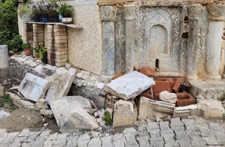 Köydeki kerpiç bir evin dış duvarında yer alan ve geç Bizans dönemine ait olduğu belirlenen tarihi çeşme, kimliği belirsiz kişiler tarafından zarar gördü.