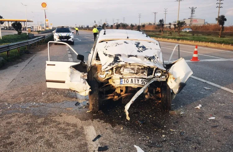 Balıkesir’den Bursa yönüne giden Süleyman Z. (51) idaresindeki 10 AIY 922 plakalı otomobil, Mustafa K.’nin (28) kullandığı 16 FR 542 plakalı otomobile arkadan çarptı.