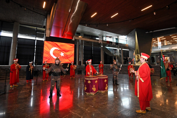 Tarihi Mehter Takımı ve Bursa Tahtakıran Kılıç Kalkan Ekibi, geçmişin ihtişamını bugünün estetiğiyle buluşturan Panorama 1326 Bursa Fetih Müzesi’nde ziyaretçilere görsel şölen yaşatıyor.