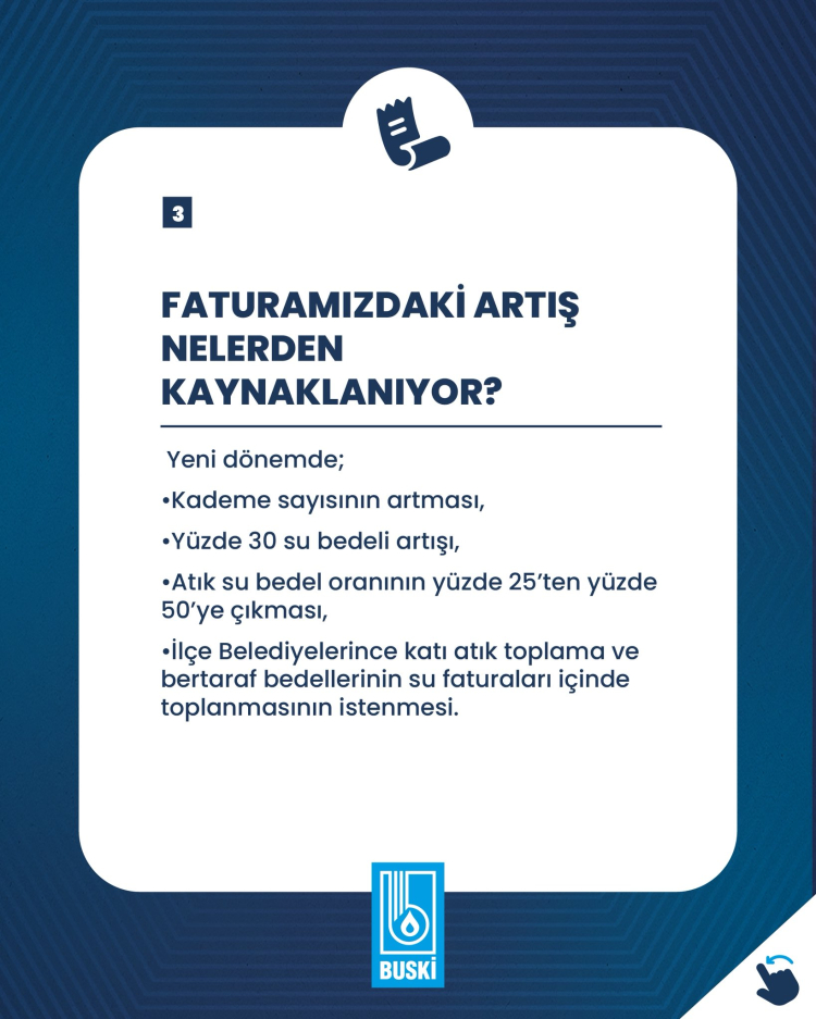 BUSKİ’nin sosyal medya hesabından yapılan paylaşımda su tarifelerindeki değişiklik hakkında bilgi verildi.