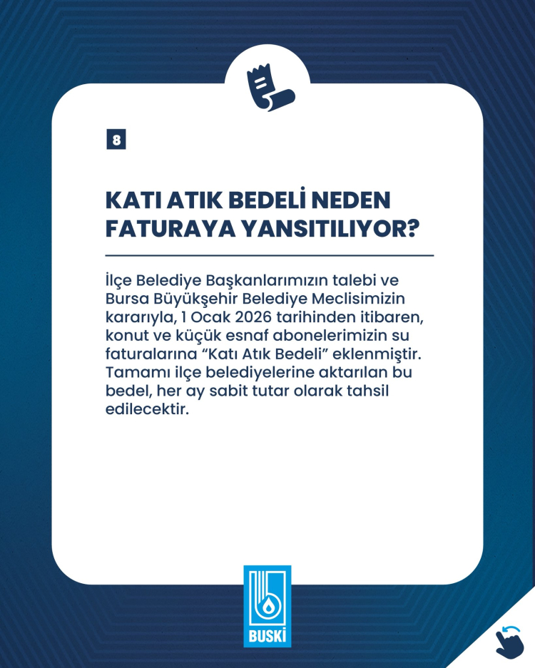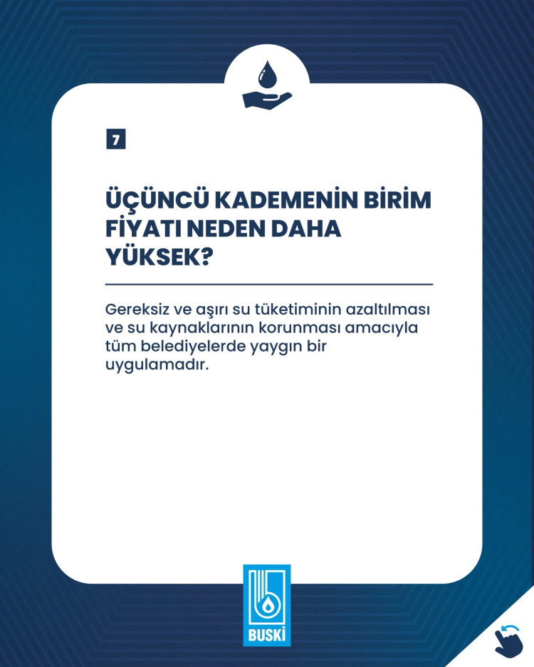 “Daha sağlıklı su hizmeti sunabilmek, altyapı yatırımlarını kesintisiz sürdürebilmek ve kent yaşamının kalitesini artırabilmek adına bu düzenleme bir gereklilik olarak hayata geçirilmiştir. Değerli hemşehrilerimizin bilgisine saygıyla sunarız.” notuyla yapılan paylaşımda “9 soruda 9 cevap” başlığıyla konuya ilişkin şu bilgiler aktarıldı: