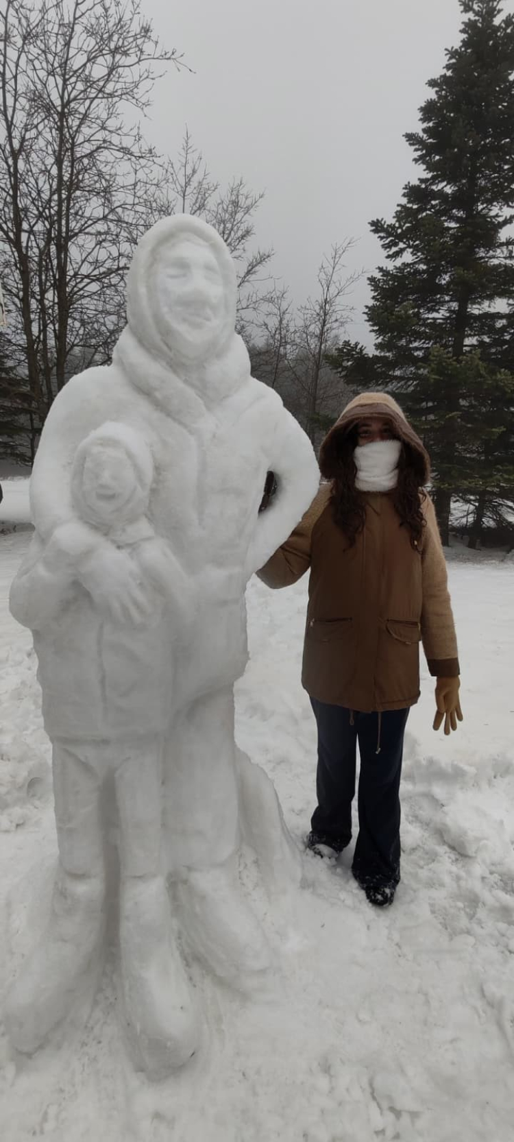 Uludağ Sarıalan mevkiinde Hakan Babaoğlu tarafından yapılan kardan heykel, detaylarıyla adeta sanat eserini aratmadı.