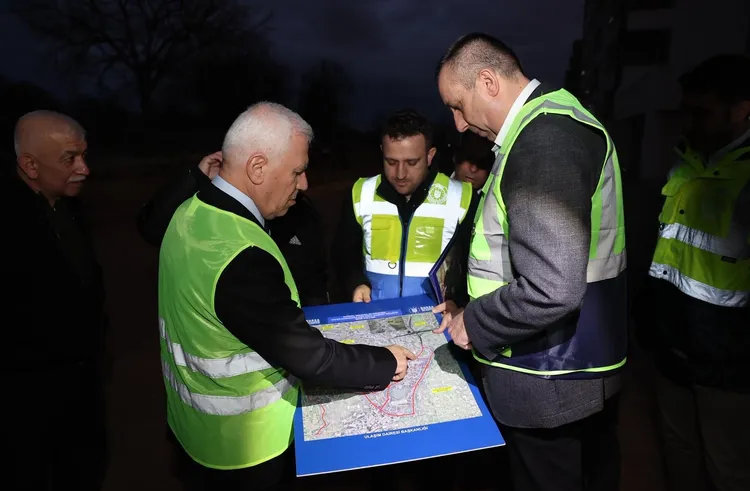 Bursa Büyükşehir Belediye Başkanı Mustafa Bozbey, Ulaşım Dairesi Başkanı Rüştü Şanlı ile birlikte yerinde incelmelerde bulunarak çalışmalar hakkında bilgi aldı.