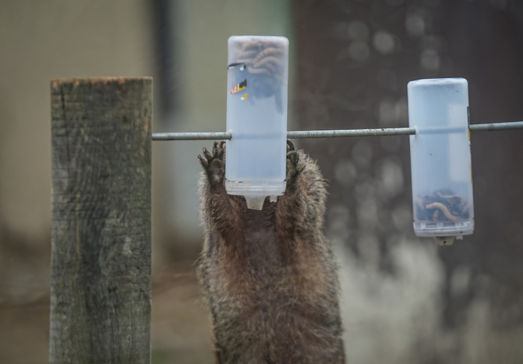 “Doğada yılan, fare, solucan ve böceklerle besleniyorlar. Biz de kırmızı et, morio kurdu ve ek besin takviyesi veriyoruz ayrıca doğal ortamlarındaki avlanma davranışını desteklemek için düzenek hazırlıyoruz. İçine morio kurtları yerleştirdiğimiz kutuları ağaçlara asıyoruz. Kutunun içine çam kozalakları koyarak kurtların düşmesini zorlaştırıyoruz. Yaklaşık bir saat süren bu etkinlik hayvanların enerji harcamasını ve doğal içgüdülerini kullanmasını sağlıyor.”
