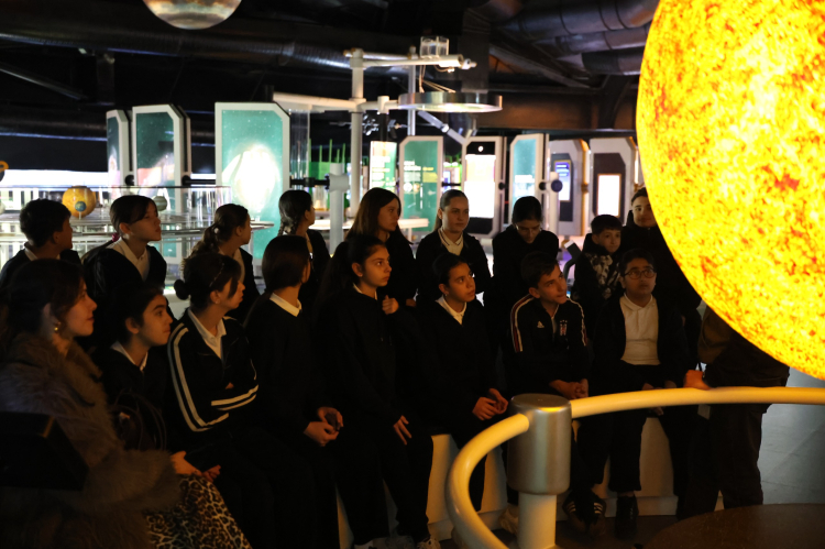Rehberler eşliğinde gerçekleştirilen gezi kapsamında öğrenciler, GUHEM bünyesinde yer alan uzay, havacılık ve bilim temalı sergi alanlarını gezerek bilgiler edindi.