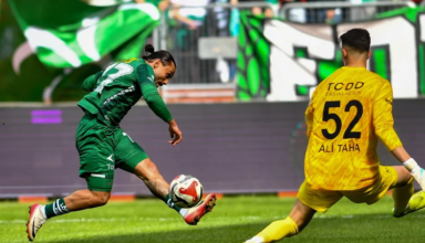 Eskişehir’de tarihi bir maça çıkan Bursaspor, Ankara Demirspor’u tek golle geçmesine rağmen Aliağa’nın kazanmasıyla şampiyonluk sevinci Bursa’ya kaldı. Zorlu maçta Halil Akbunar ile kazanan Bursaspor, Soma maçında 1 puan dahi alsa şampiyon olarak 1. Lig’e yükselecek. Bursaspor, şampiyonluk umuduyla gittiği Eskişehir deplasmanında kritik bir galibiyete imza attı. Ankara Demirspor’u Halil Akbunar’ın attığı golle 1-0 mağlup eden yeşil-beyazlılar, 32 bin 500 taraftarının büyük desteğiyle adeta deplasmanı evine çevirdi. Bu sonuçla puanını 74’e yükselten …